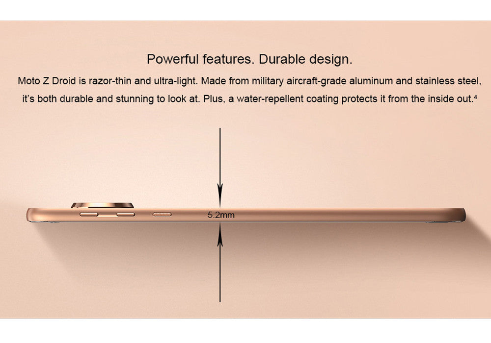 Featuring the Snapdragon 820 CPU, this powerful Android phone provides a smooth and ultra-fast performance. Built for speed and energy efficient usage, this Quad-Core CPU that has been clocked at 1.8GHz allows you to engage in the most demanding of mobile activities without slowing down or heating up your device. Besides its powerful CPU, this Chinese smartphone furthermore packs an incredible 4GB of RAM, letting you engage in excessive multitasking activities as if it's nothing. Play games, watch FHD movies, and enjoy multiple of the latest mobile applications at once - no matter what you throw at it, there is nothing the MOTO Z XT1650 Android phone can't handle.